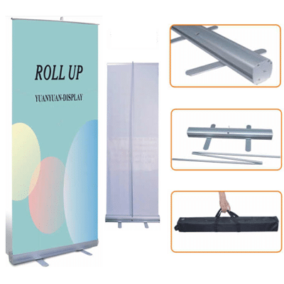 Roll up stand is made of aluminum used to display the advertising message for all services or products of companies or can be used during an event or a specific occasion. The roll-up or dot is printed and is characterized by lightweight and the sizes of the roll-up stand vary from small to large sizes, most of them have a fixed size in height and 2 meters, but increase in width
